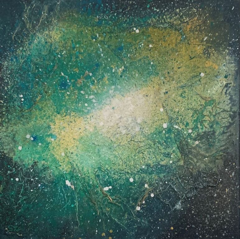 30x30 / Acrylique, papier de soie, poudre de marbre, craie
